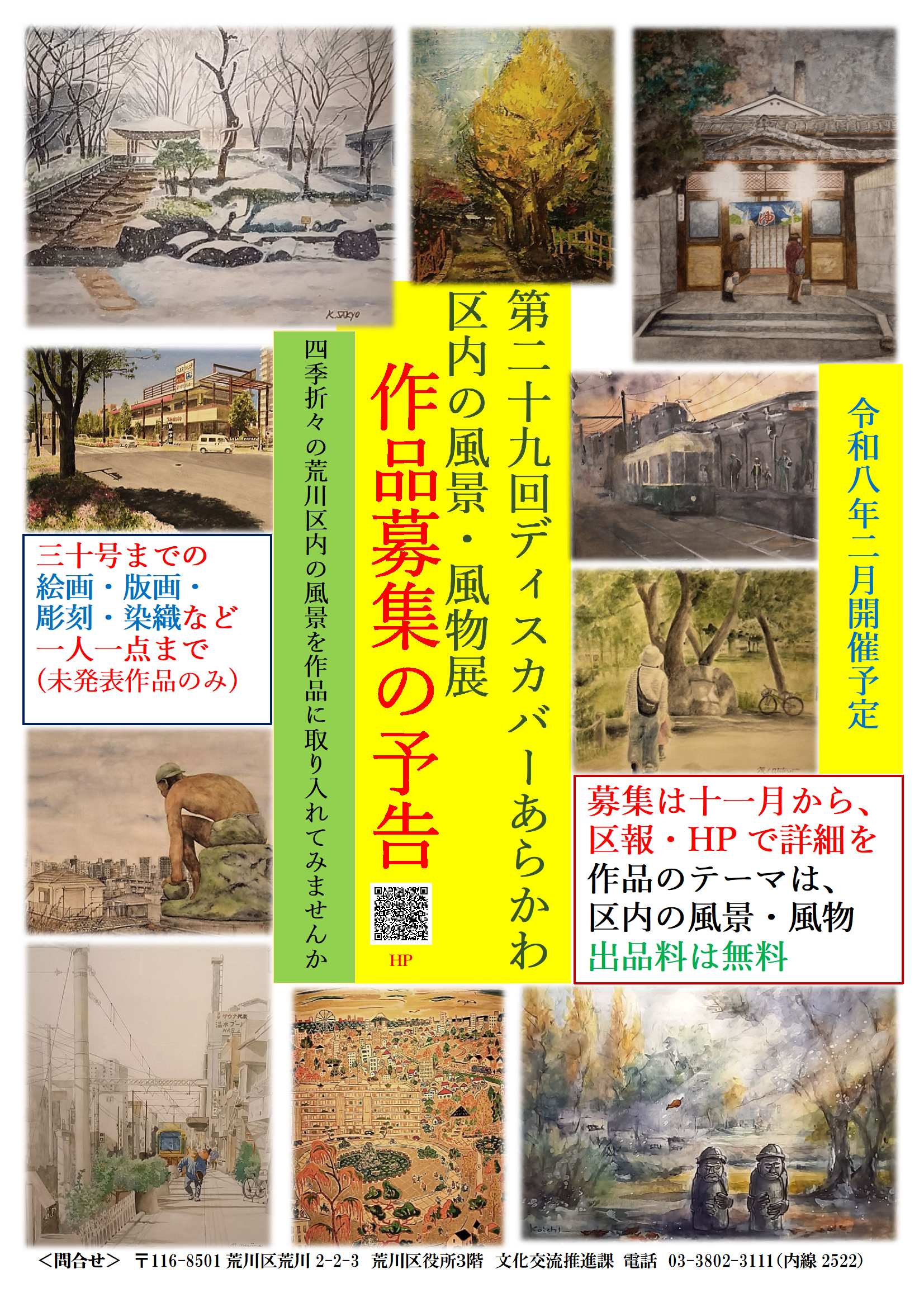 第29回ディスカバーあらかわ「区内の風景・風物展」展覧会の作品募集予告