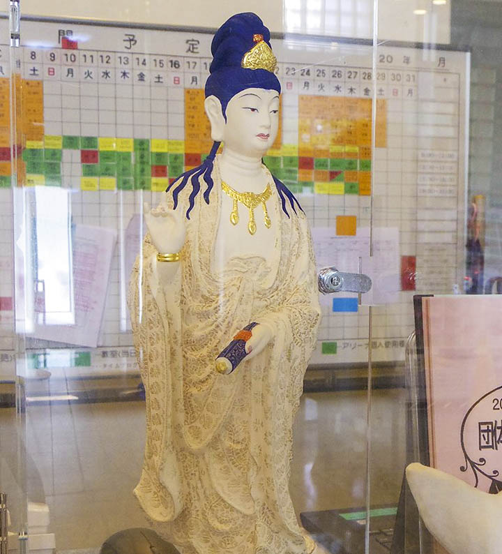 当地には平野富山氏の「白衣観音」があります。※荒川遊園スポーツハウスのリニューアル工事に伴い、現在彫刻の公開を中止しています。