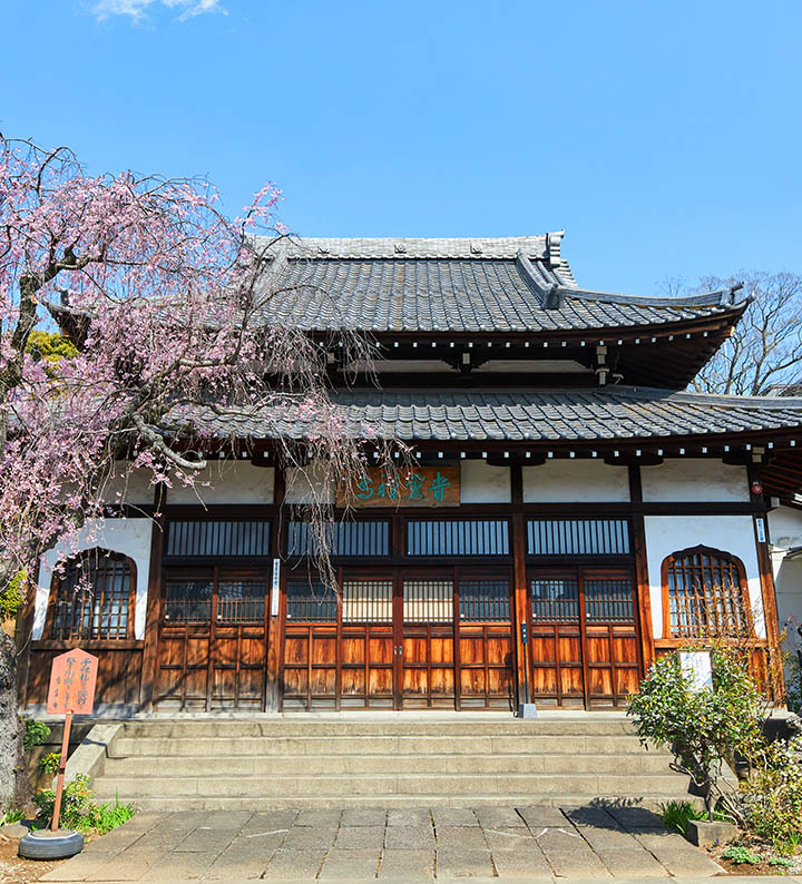 花見寺とも呼ばれ、谷中七福神の一つ恵比寿神があります。本堂脇には「南総里見八犬伝」の作者滝沢馬琴の筆塚があり、使用した筆が供養されています。また、本堂右脇に「日暮里船繋松の碑」があります。船繋松は太田道灌の砦に荷を運んでいた舟人が目印とした高台の松で、江戸時代青雲寺の境内だった今の西日暮里公園にあります。