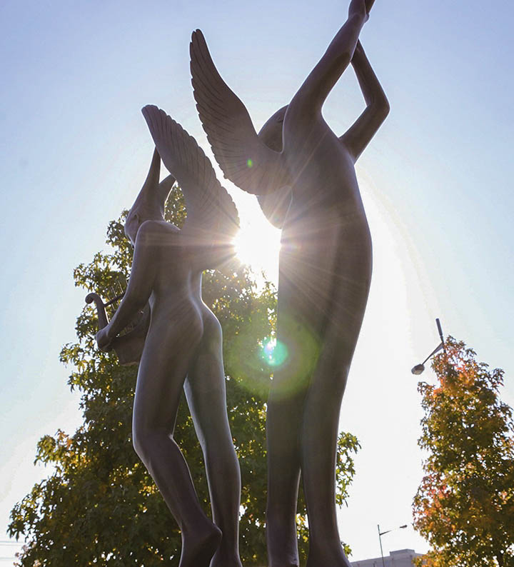 南千住駅東口「ドナウ広場」とそれに続く道路「ドナウ通り」は区とウィーン市ドナウシュタット区(オーストリア共和国)との交流を記念して命名されました。ドナウ広場には、両区の永遠の友好を願って、「ドナウの調べ」と名付けられたブロンズ像が、設置され、広場は人々の憩いの場となっています。