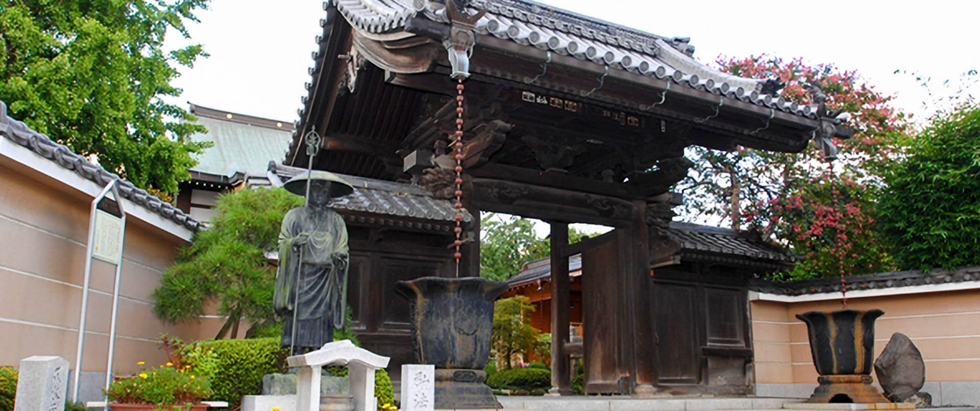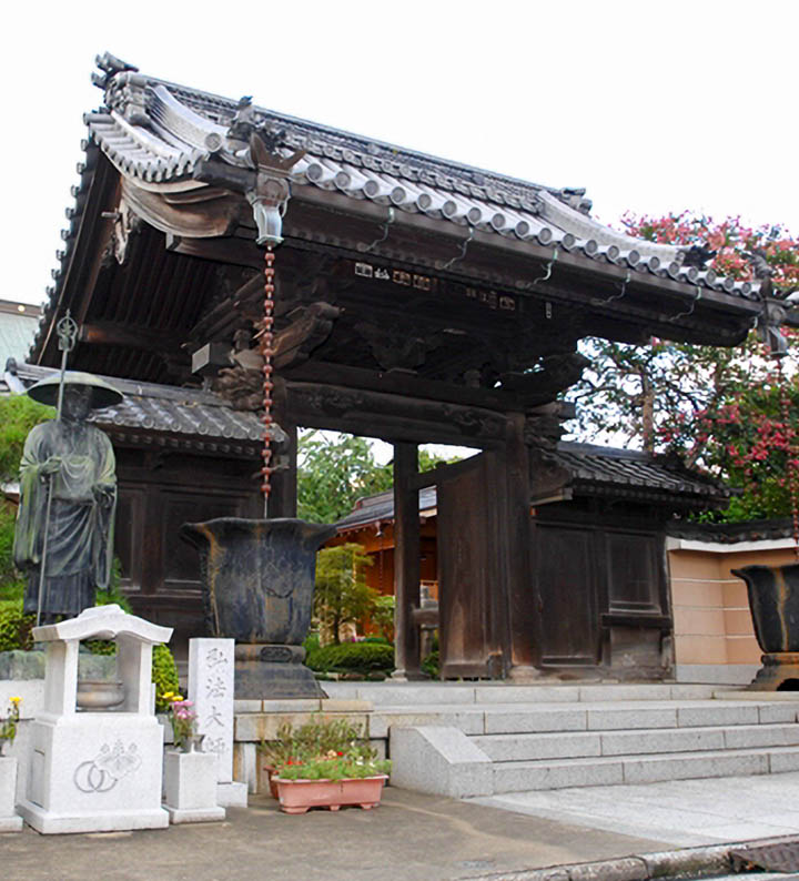 中世に造られた板碑2基を所蔵し、境内には多数の石塔が残されています。当院は江戸時代末期より上尾久村の教育の場であり、弘化2年(1845)に寺子屋江川堂が開かれ、明治11年(1878)には区立尾久小学校の前身の私立田辺小学校が設立されました。