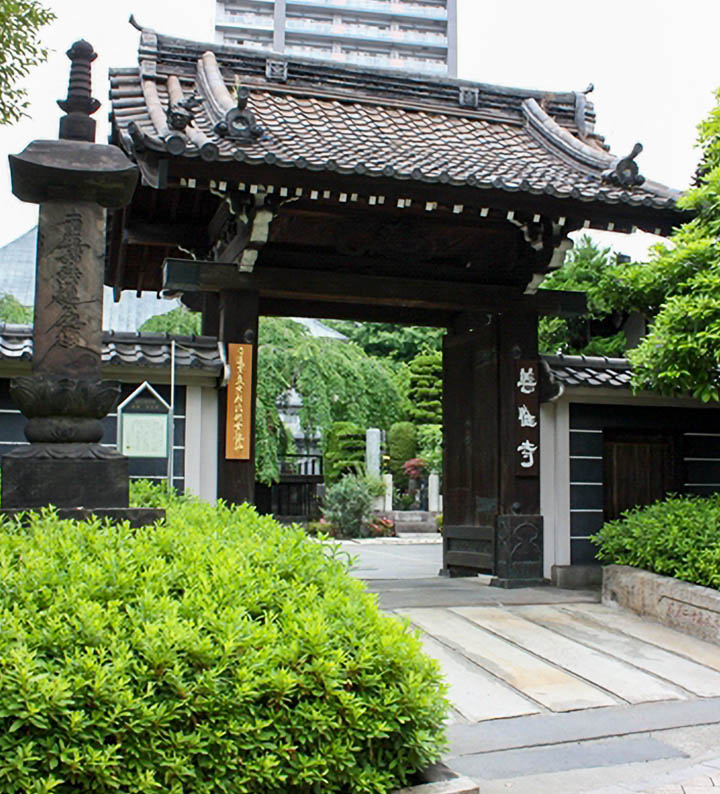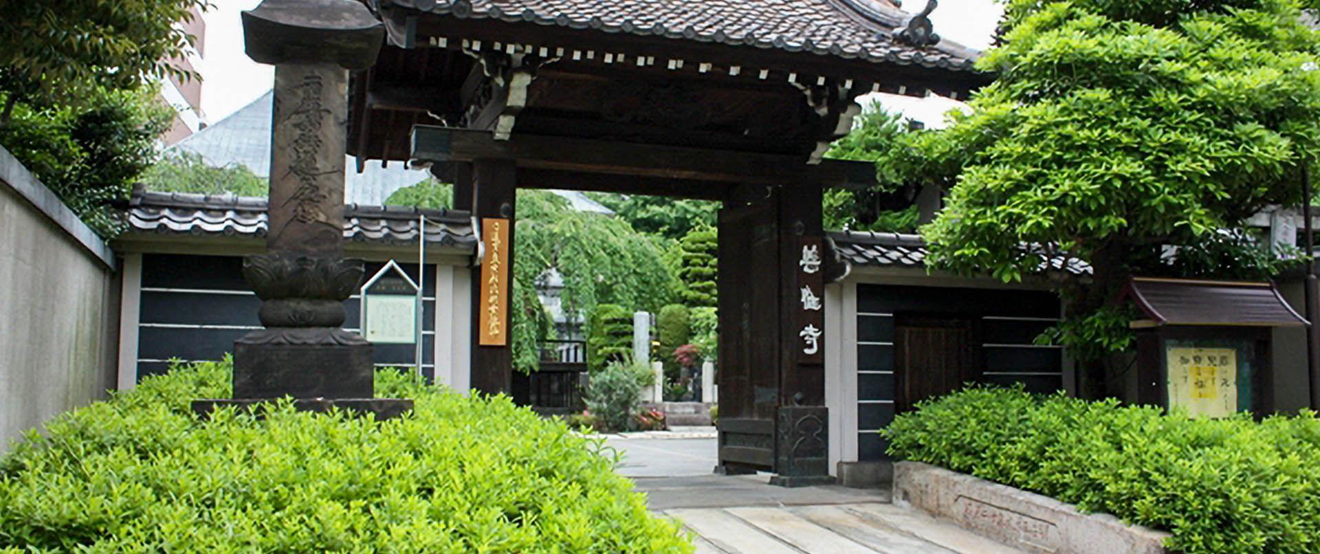 寛文4年(1664)に六代将軍徳川家宣の生母長昌院が葬られて以来、将軍家ゆかりの寺となりました。名横綱双葉山や総理大臣石橋湛山の墓、安土桃山時代の作と伝わる「不二大黒天像」も多くの信仰を集めています。