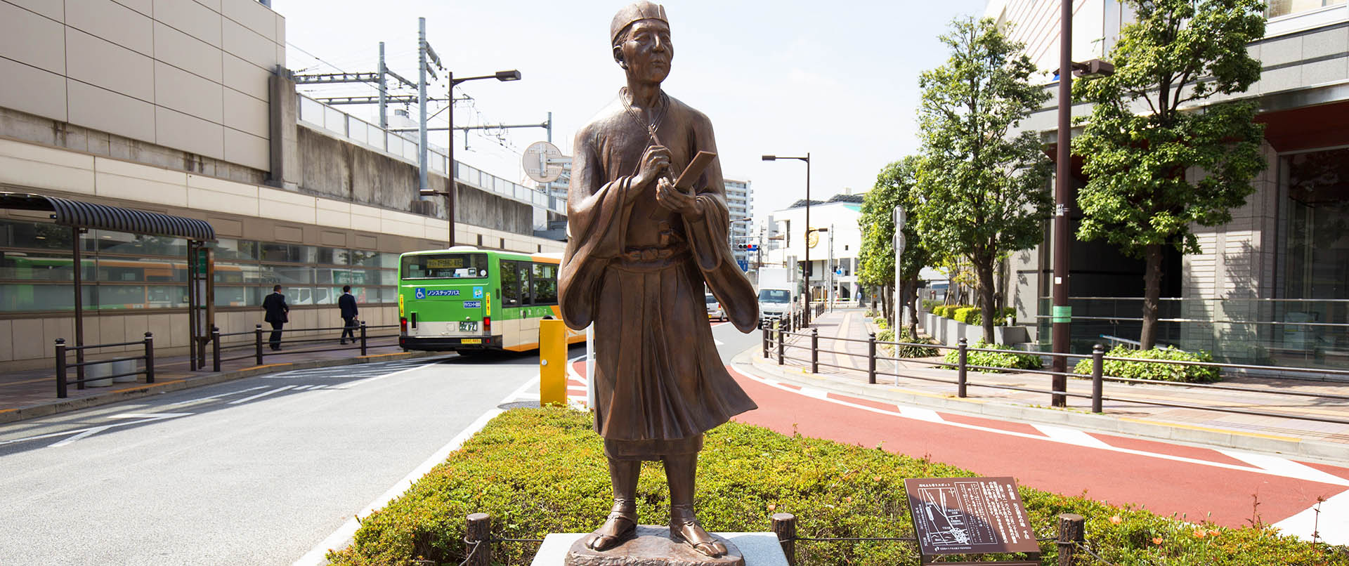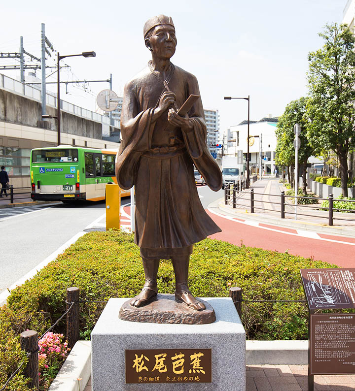 元禄2年(1689)3月27日(新暦5月16日)、松尾芭蕉は千住の地から奥の細道の旅へと出立しました。荒川区では、奥の細道千住あらかわサミット開催を記念し、平成27年3月に松尾芭蕉のブロンズ像(平野千里氏制作)を建立しました。