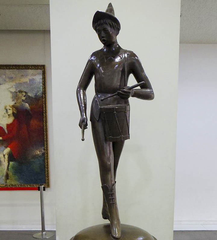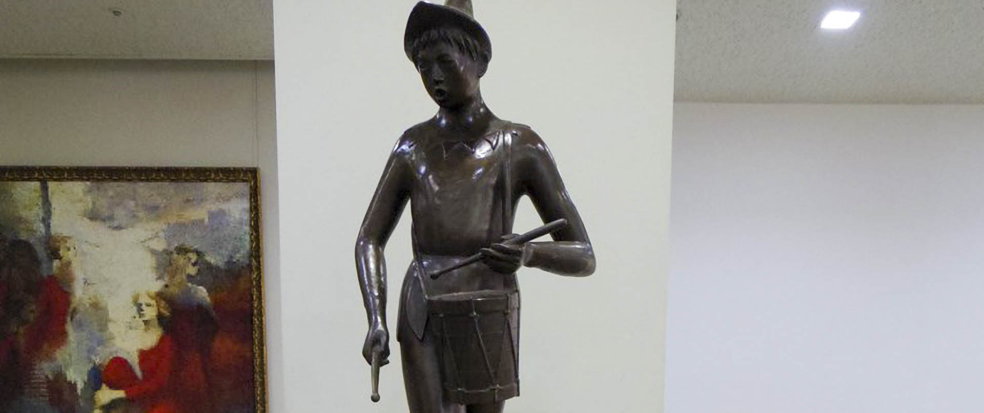 当地には御正進氏の「鼓動」があります。太鼓をたたく少年のリズミカルな動きを表現し、たたきながら歩き出す瞬間の動きが、未来や希望につながるイメージを持っています。他に1体の作品があります。