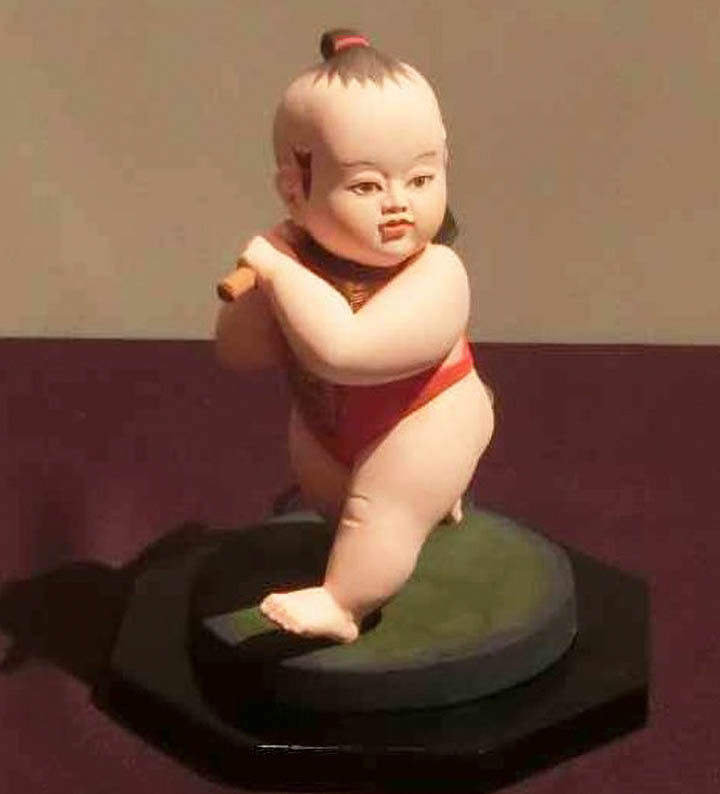 当地には平野千里氏の「金太郎」があります。金太郎は足柄山で熊と相撲をとり、母に孝行する元気で優しい男の子。足柄峠で源頼光と出会い、力量を認められ家来となります。坂田金時と改名し、京にのぼり大江山(現在の福知山市)に住む酒吞童子を退治するという活躍をみせました。金太郎につきものであるマサカリは象形文字で「王」を表し、腹掛けは鍛冶を表わすといわれています。