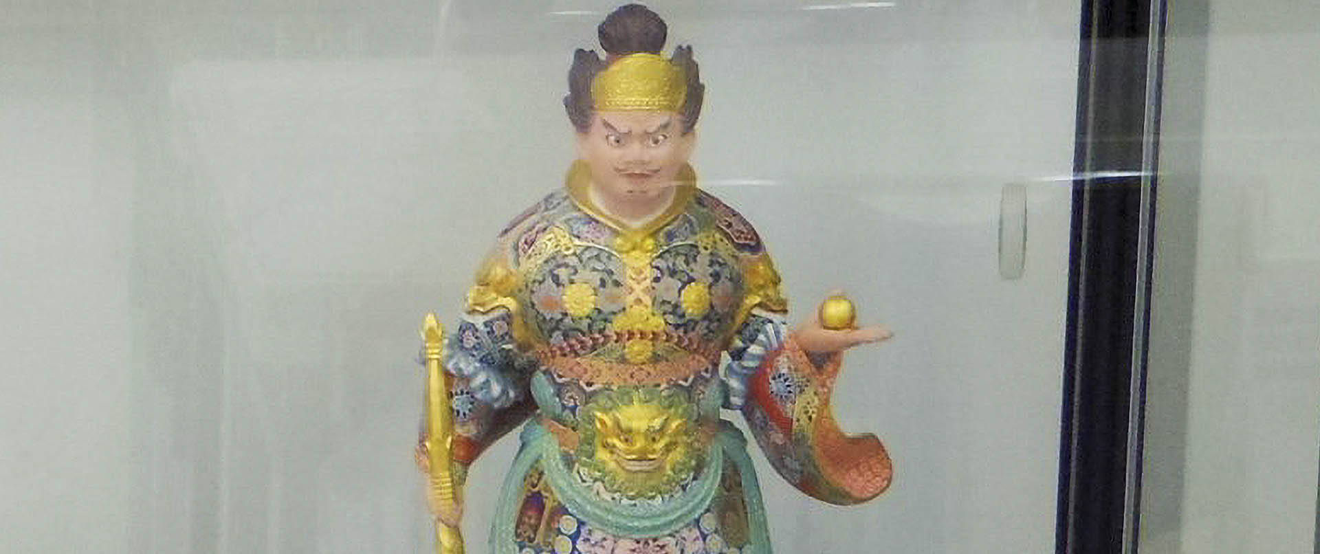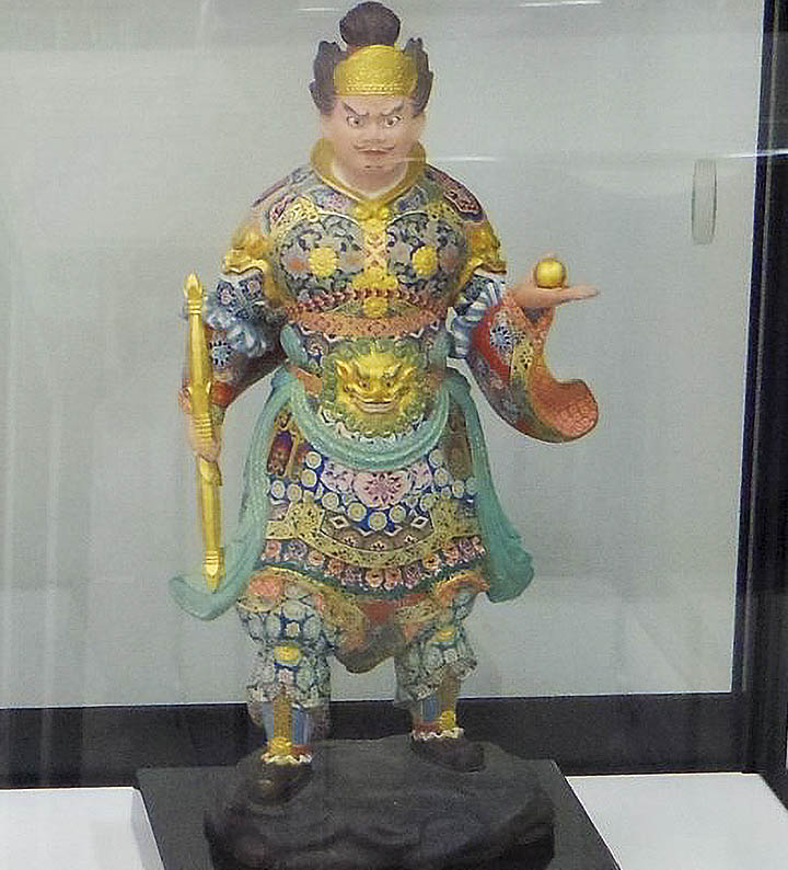 左手に宝塔、右手に宝棒を持つ財福の神様です。