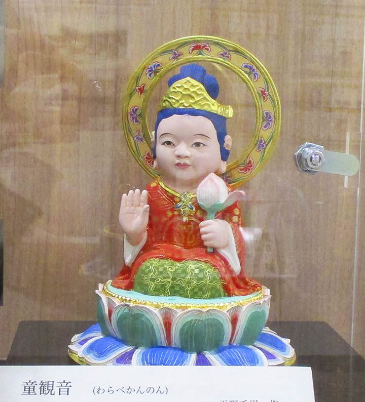 当地には平野千里氏の「童観音」があります。観世音菩薩の童子形。可愛らしくてふくよかで、なおかつ聡明、智力を併せ持つ威厳のあるお姿、でもやっぱり可愛いのが一番いい。