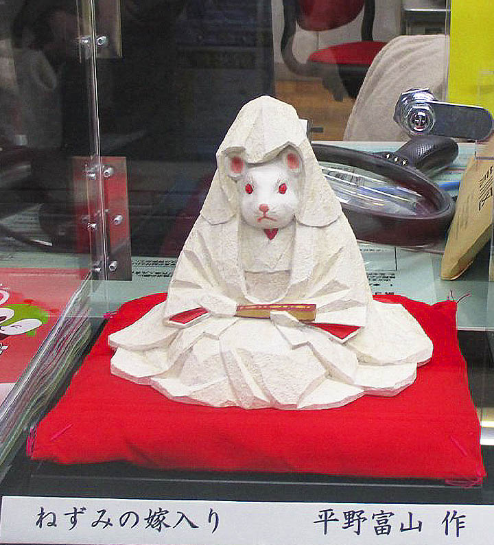 当地には平野富山氏の「ねずみの嫁入り」があります。「ねずみの嫁入り」とは、あれこれと選んでみても結局変わりばえのしない所に落ち着くというたとえです。仏教説話集「沙石集」などにみられる昔話が由来とされています。