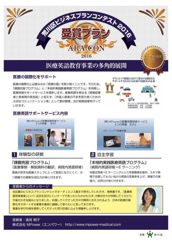 荒川区ビジネスプラン表彰式(「ARA-CON(あらこん)2016ファイナルイベント」にて)
