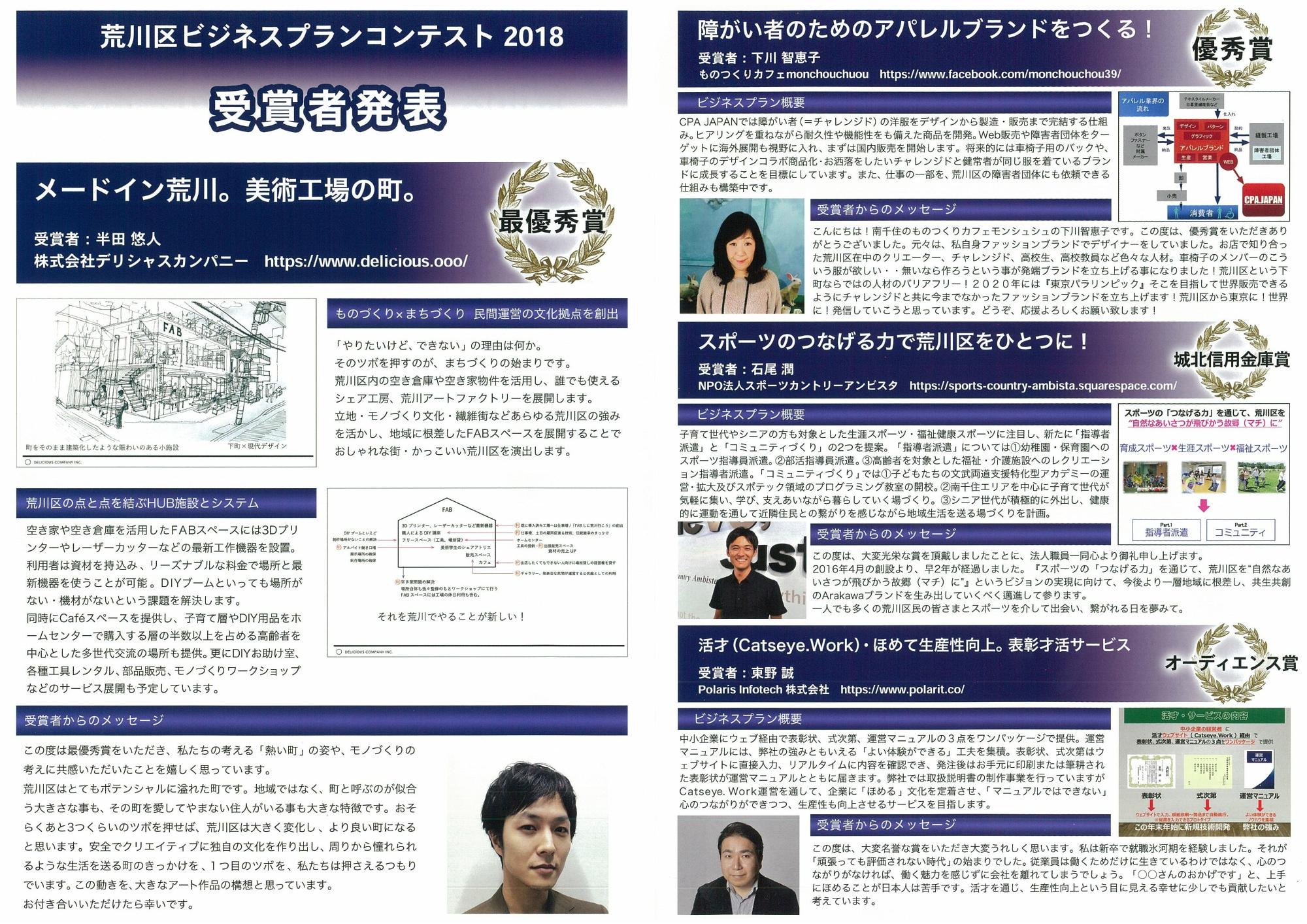 荒川区ビジネスプランコンテスト2018表彰式