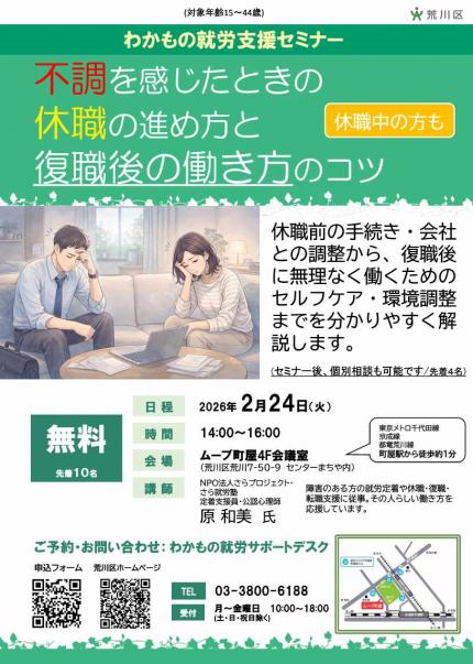24日は、休職前の手続き、会社との調整や復職後に無理なく働くためのセルフケアから環境調整までを分かりやすくお話します。