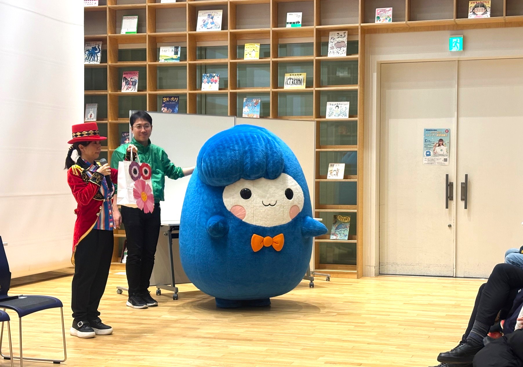 講演の最後には、マリカ先生からのお花の種のプレゼントを持ってきたあら坊が、皆さんをお見送りしました。