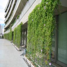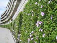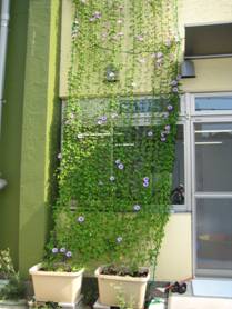 どんなに植物を植える土地が少なくても、つるを垂直に伸ばすことで、緑化をすることができます。