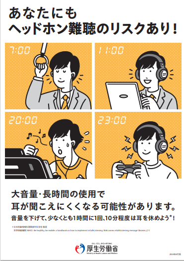 厚生労働省あなたにもヘッドホン難聴のリスクあり!(外部サイトへリンク)