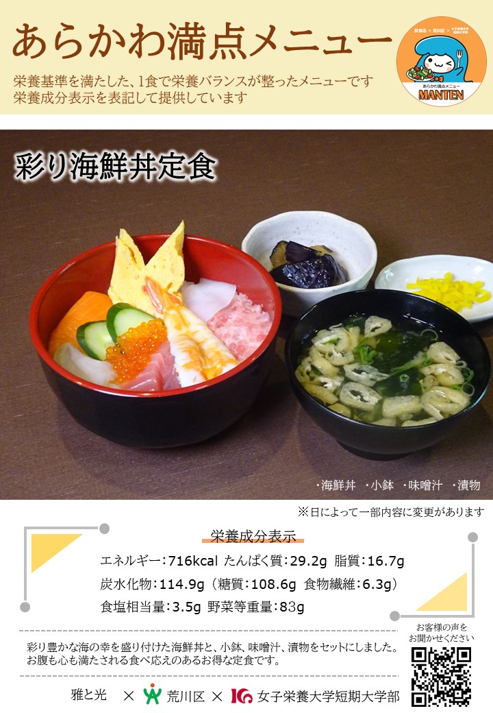 トップページ > 健康・医療・衛生 > 健康づくり > あらかわ満点メニュー > あらかわ満点メニュー提供店へ行こう > 雅と光