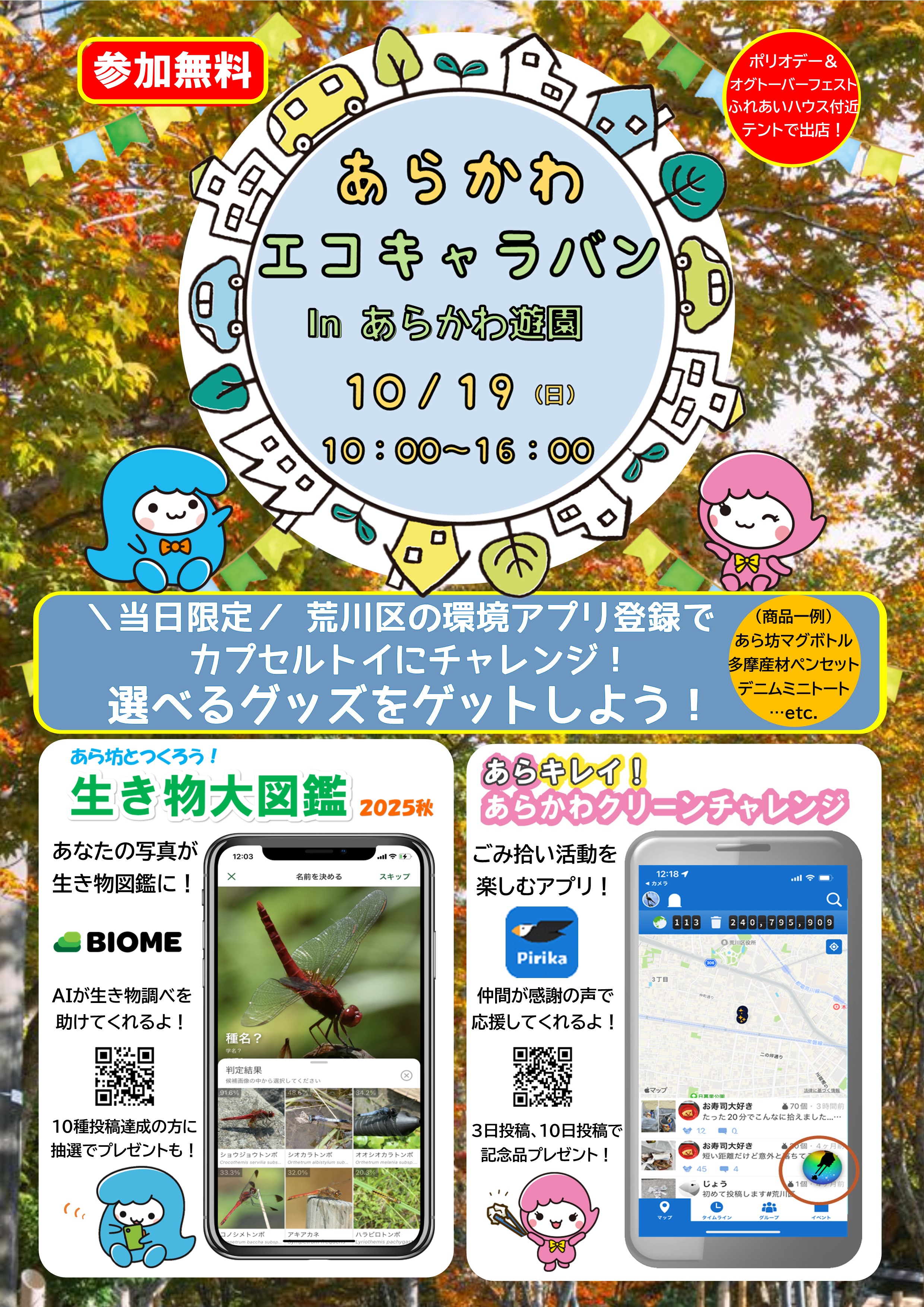 環境イベント「あらかわエコキャラバン(秋)」を出展します♪